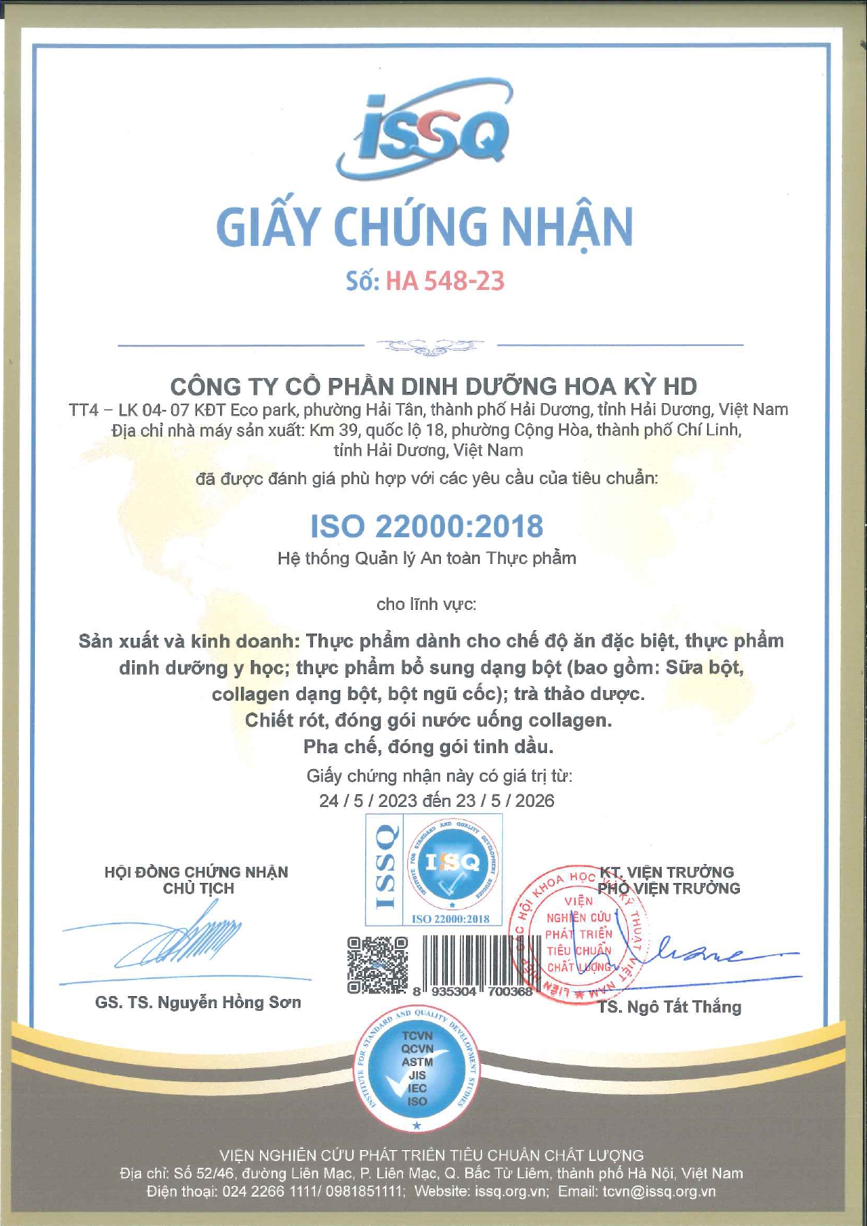 • GCNDKDN: GCNDKDN: 8358111016-001 đăng ký ngày 14/04/2025 quản lý bởi Đội thuế quận Hà Đông